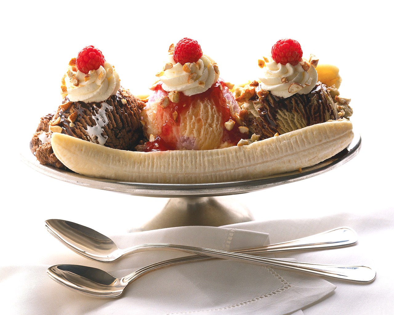 Spoons and Banana Split — Image by © Royalty-Free/Corbis