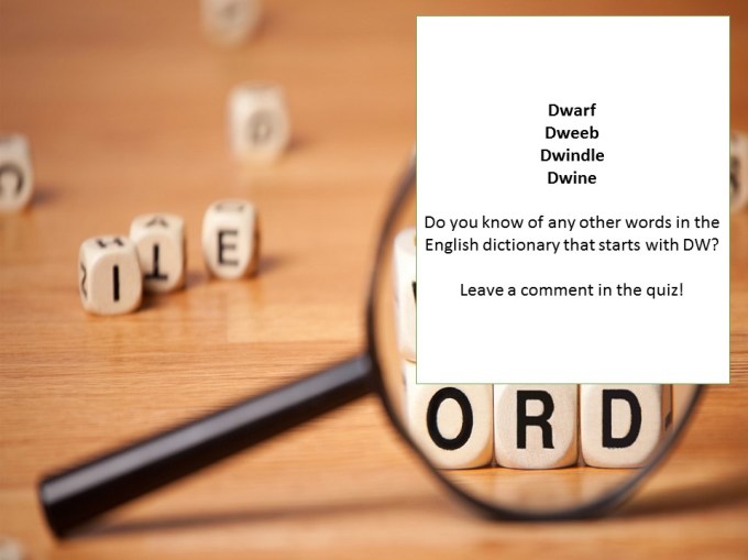 2. Give 4 words in the dictionary that starts with the letters “D” and “W.” Without repeating root words. (Click here for the answer)